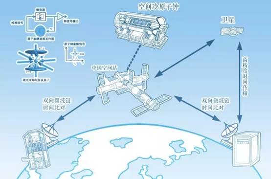 由于空间冷原子钟可以在太空中对其它卫星上的星载原子钟进行无干扰的时间信号传递和校准,从而避免大气和电离层多变状态的影响,使得基于空间冷原子钟授时的全球卫星导航系统具有更加精确和稳定的运行能力。