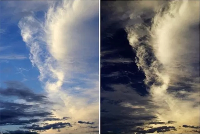云的偏振成像对比(右为偏振图像)